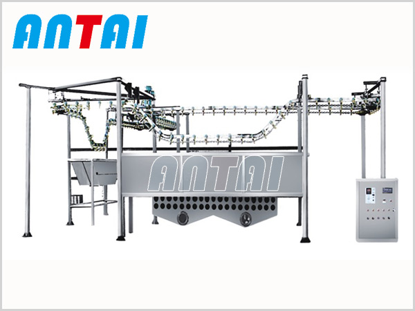 懸掛油炸雞線采用鏈條吊掛傳送系統(tǒng),有六個工作區(qū)分別有雞掛線區(qū)、上糖區(qū)、瀝糖區(qū)、油炸區(qū)、瀝油風冷區(qū)、下線區(qū);懸掛方式有掛鉤是和炸框’式。